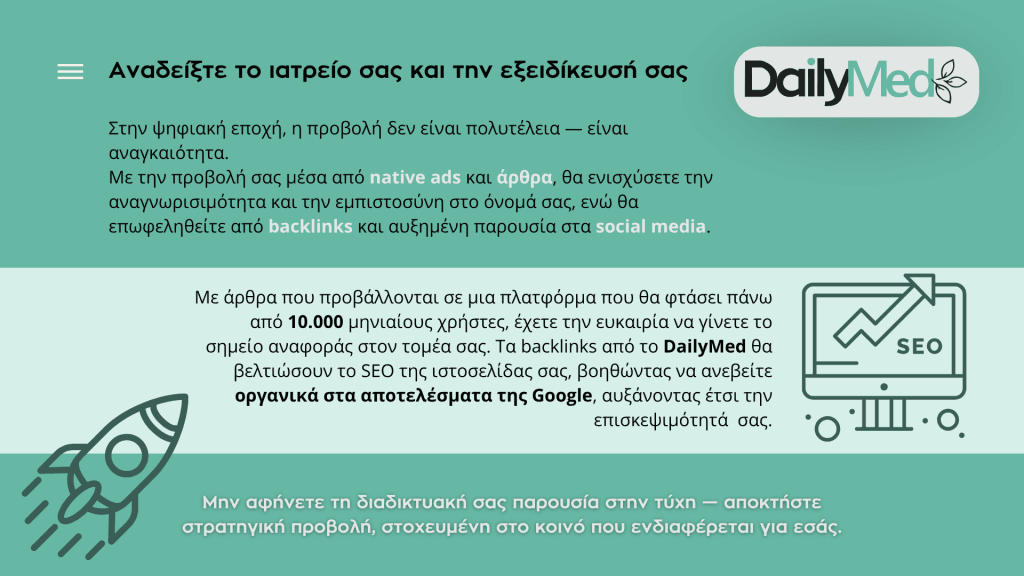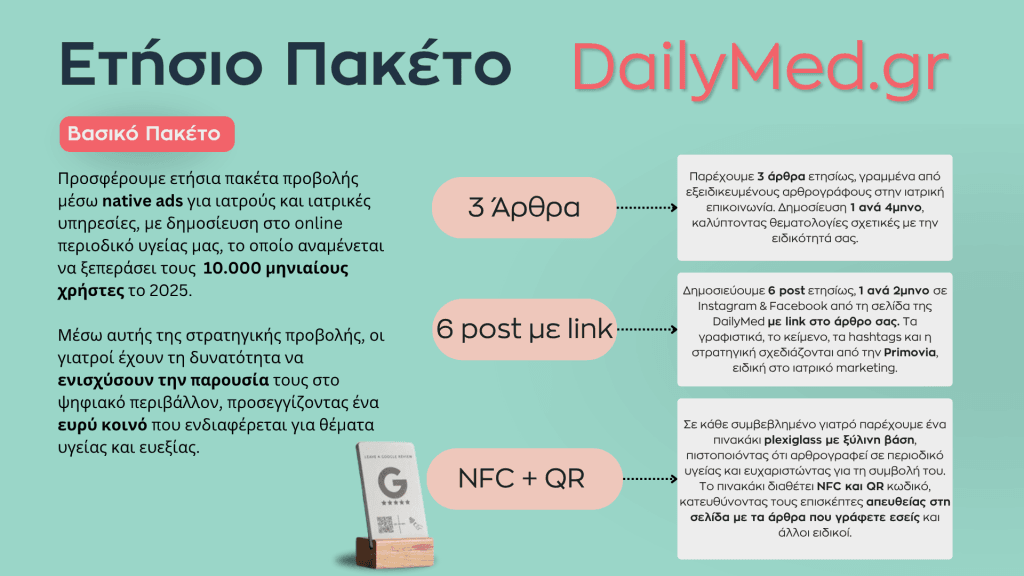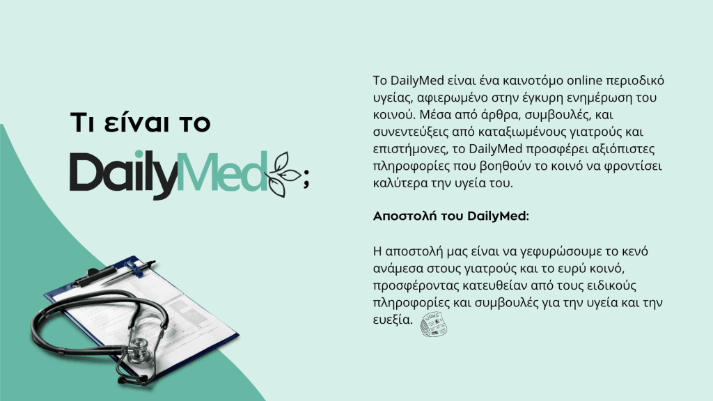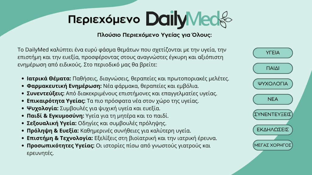 Designed and developed with a strong focus on science communication, DailyMed.gr offers reliable health information, expert articles, and interviews with medical professionals.