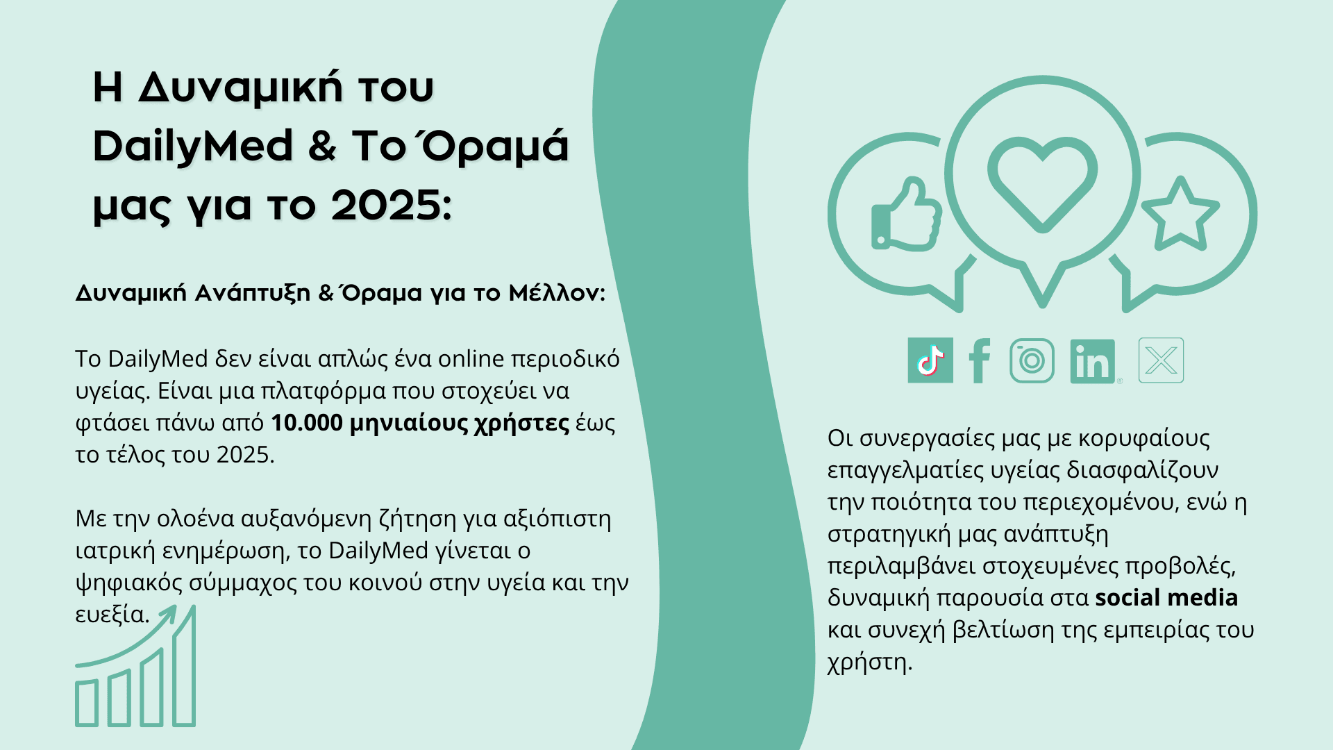 Designed and developed with a strong focus on science communication, DailyMed.gr offers reliable health information, expert articles, and interviews with medical professionals.
